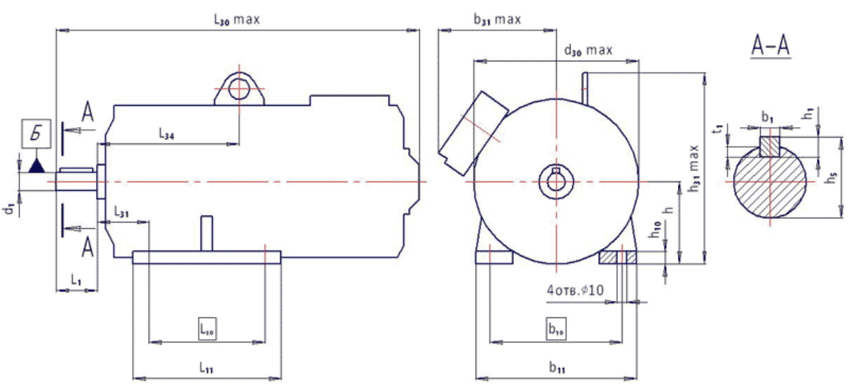 Габаритные и присоединительные размеры электродвигателей серии 2П